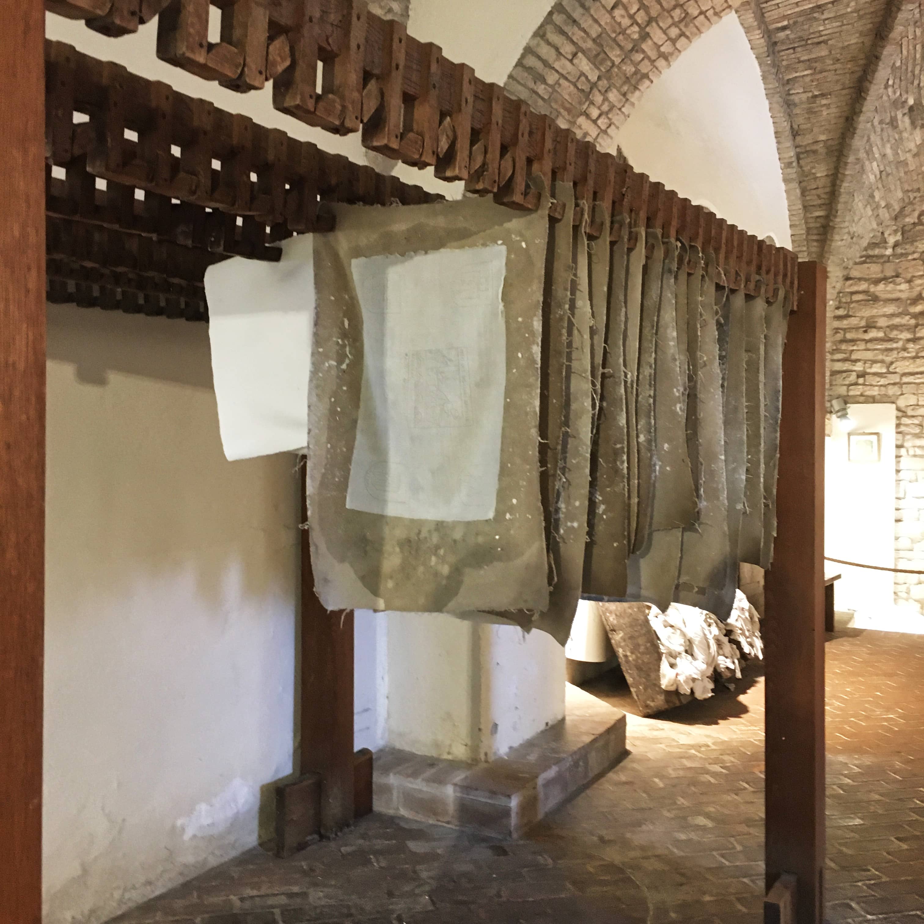 Séchage du papier après le passage à la presse. Museo della carta e della filigrana, Fabriano.