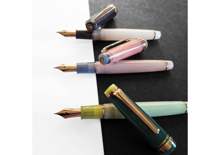 Rose noire, Eucalyptus, ou Amarantine globuleuse, ce sont les noms de trois modèles de stylos-plume PG slim de la deuxième série « Fleurs séchées ». Et comme toujours chez Sailor, les couleurs sont, c’est le moins qu’on puisse dire, peu communes ! Chaque stylo a différentes couleurs ou nuances de couleurs pour le capuchon, le corps du stylo, et, parsemées de minuscules éclats blancs, pour la section et le sommet du capuchon.