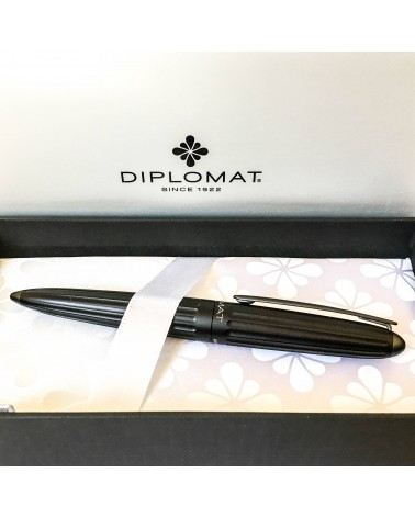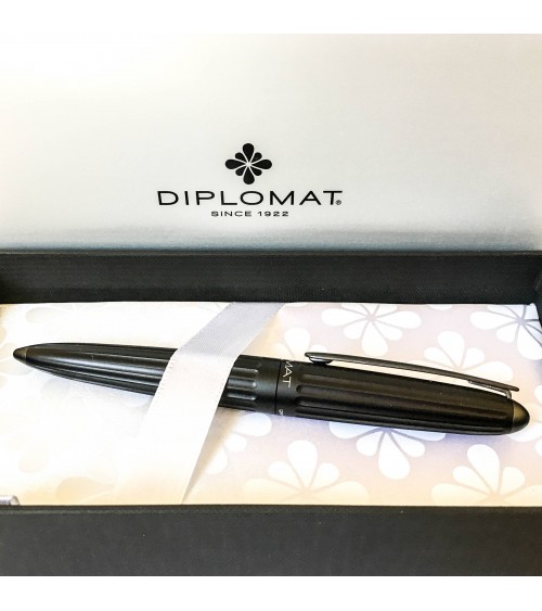 Les modèles "Aero" de Diplomat, inspirés des zeppelins, sont d'un design unique sur le marché. Le corps est en aluminium finition noire, le bec (plume) est en acier inoxydable finement ciselé et poli. La tenue en main est remarquablement agréable.